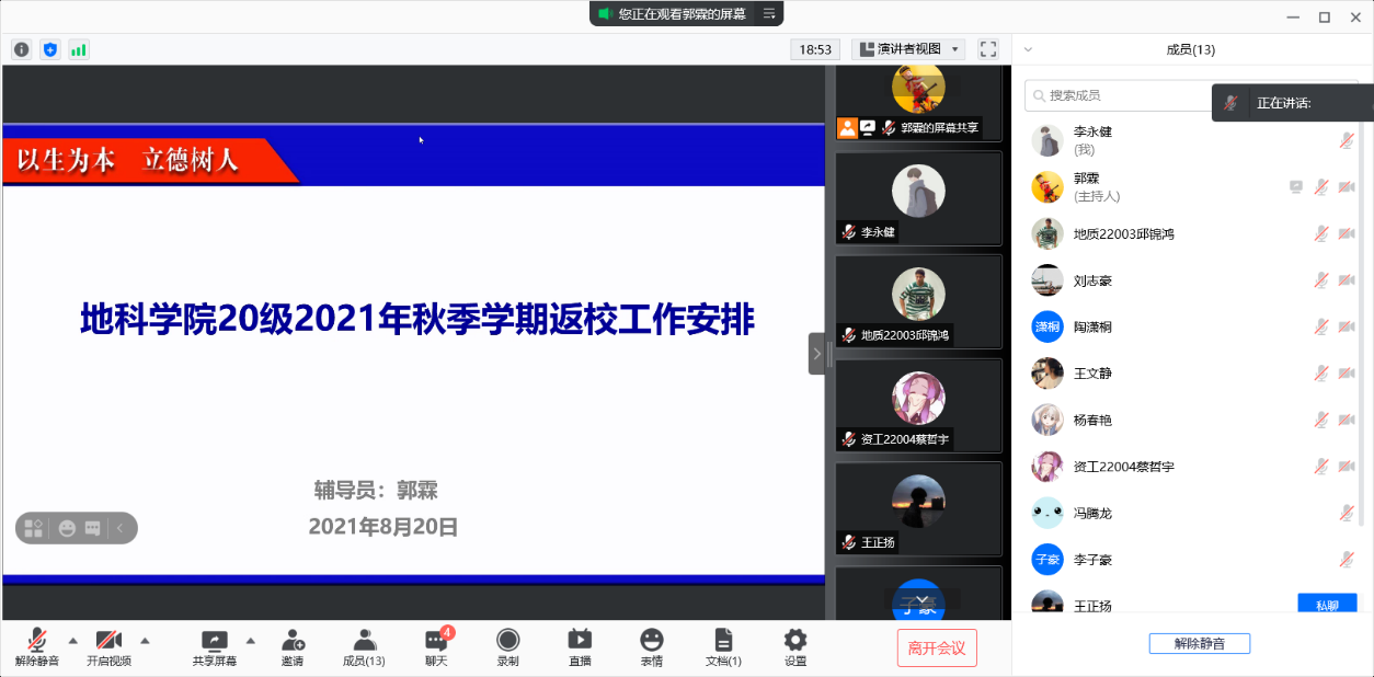 (通讯员 李永健)为确保2021年秋季学期开学返校工作平稳有序开展,公司按照疫情防控要求以及8月15日学校发布的《关于做好2021年秋季学期开学准备工作的通知》,于8月20-22日用腾讯会议的形式在全体员工中召开了“英国威廉希尔公司2021年秋季学期返校工作安排”主题班会。