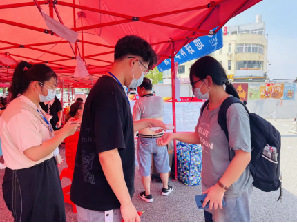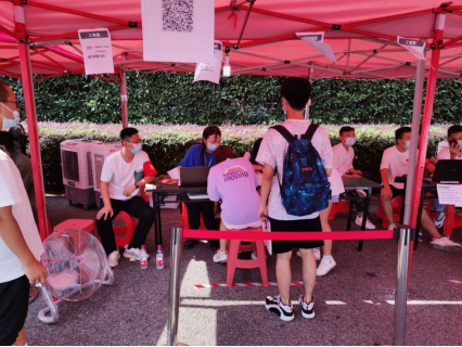 公司新生严格按照学校疫情防控规定要求入校。在来校前,所有员工已上传健康码、行程码、疫苗证明,报到时再次确认并消杀测温、查看核酸报告;其次,扫码签到进行资格审查,最后发放员工手册等物资,入住寝室。虽然戴着口罩,但大家微笑的眼神,热情的话语、忙碌的身影构成了有爱的迎新画面。
