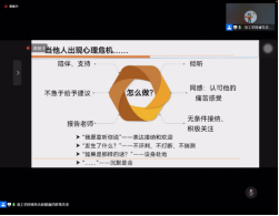 紧接着,油工学院商麟鑫老师以“心理危机”为主题,从心理健康的5种表现出发,详述12种心理危机的类型,明晰校园心理危机的识别方法和干预措施。最后,商老师给出了6种沟通方式,对同学们关怀有心理危机员工具有极强的指导意义。